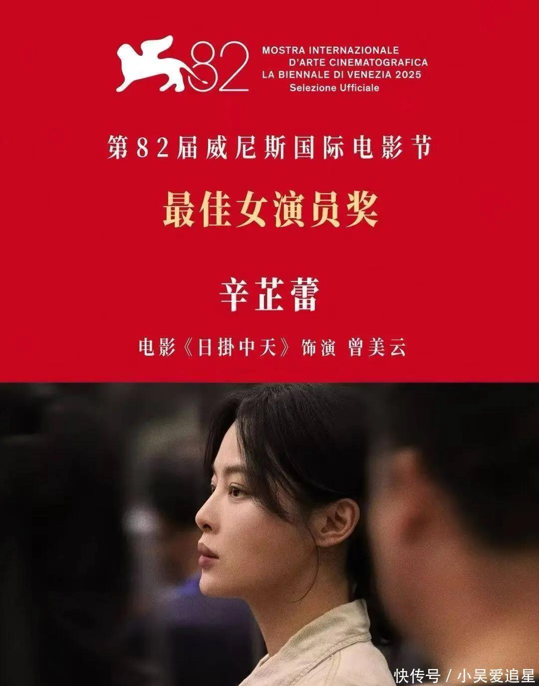 值得关注的是,此次被力挺的辛芷蕾,早已凭借过硬实力在国际影坛站稳脚跟。时间回溯到2025年9月7日凌晨,意大利威尼斯利多岛的电影宫灯火通明,第82届威尼斯国际电影节的颁奖仪式正在这里举行。当评审团主席念出“最佳女演员——辛芷蕾,《日掛中天》”时,现场响起一阵密集的掌声。当天的辛芷蕾身着一袭黑色丝绒抹胸长裙,裙摆绣着暗金色的竹叶纹样,搭配简约的银色耳坠,妆容淡雅却气场全开。听到自己名字的瞬间,她先是微微一怔,随即与身边的导演蔡尚君用力拥抱,起身走向领奖台时,脚步沉稳却难掩激动。接过沉甸甸的金狮造型奖杯,她的指尖因激动微微泛红,用流利的中文发言:“感谢评委的认可,感谢蔡尚君导演给我‘美月’这个角色,也感谢张颂文、冯绍峰等合作伙伴的陪伴,这个奖项属于整个团队”。台下的中国记者举起相机,记录下这一历史性时刻——辛芷蕾成为继巩俐(1992年凭借《秋菊打官司》获奖)后第二位获此殊荣的中国内地女演员,也是威尼斯电影节史上首位中国“85后”影后。